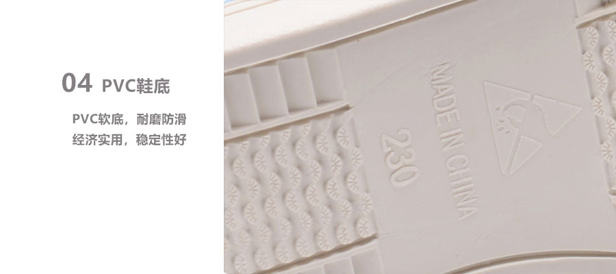 防靜電鞋是電子半導體、電子通訊設備和集成電路等微電子工業生產車間為減少或消除靜電危害而穿著的一種工作鞋。防靜電鞋可以將靜電從人體導向大地,從而消除人體靜電電荷,同時還能有效地抑制人員在無塵室中的走動所產生的灰塵。適用于電子廠潔凈車間、制藥廠、食品廠、實驗室等。PVC帆布中巾鞋采用散電材料PVC材料制作鞋底,與帆布鞋幫一體成型,能有效泄放靜電,且耐磨防滑、經濟耐用。