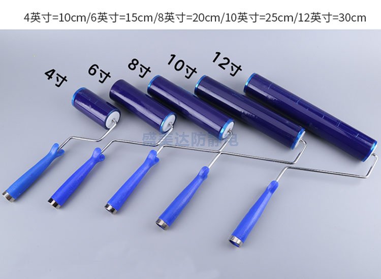 粘塵滾筒基材為優質聚乙烯PE膜,配合環保型聚丙烯酸酯膠粘劑(水溶性)復合而成,PE膜上設有預裁線,方便撕掉,優多種粘度可供選擇,環保不脫膠無污染,能快速有效地清除各種灰塵顆粒,可在千級、萬級無塵車間使用,是潔凈無塵室除塵的重要手段之一。
