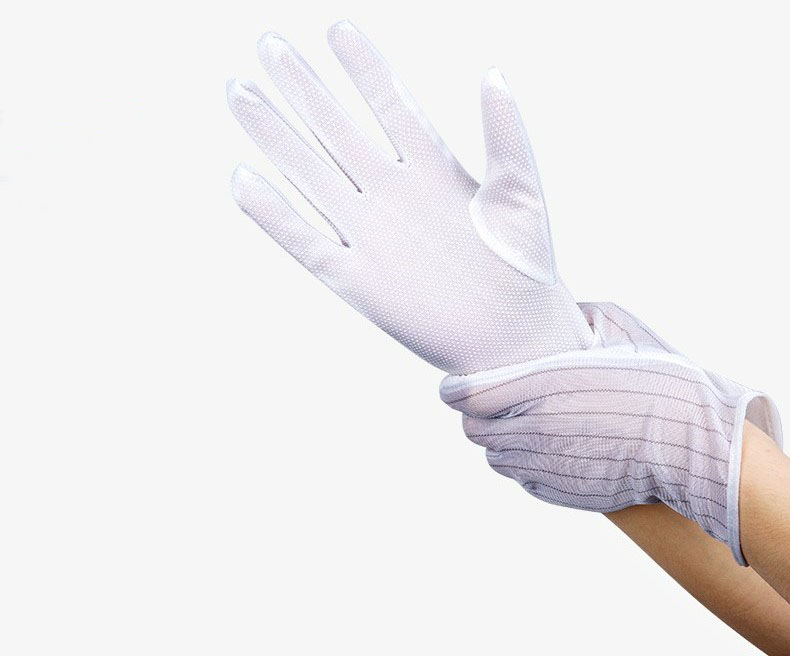 防靜電點塑手套又稱防靜電點塑防滑手套,是采用特種防靜電滌綸布制作而成,材質由滌綸和導電纖維組成,導電纖維間距為10mm,手心加上PVC防滑顆粒,防滑性好、耐磨性好,手套具有極好的彈性和防靜電性能,能避免人體產生的靜電對產品造成破壞,適合在電子行業、半導體、醫療生物、光伏、光學及無塵車間使用。
