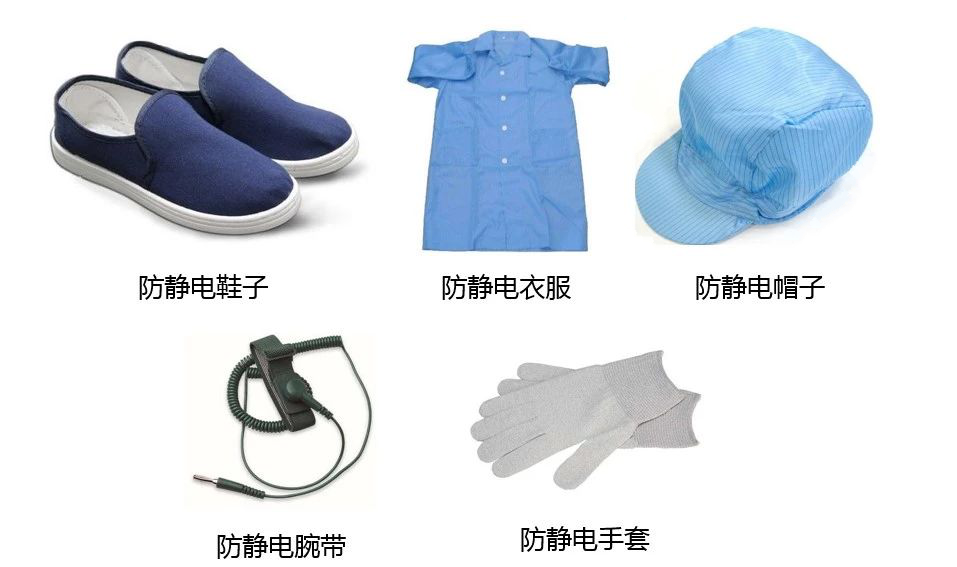 潔凈室的靜電防護用品包括有防靜電鞋子、防靜電衣服、防靜電帽子、防靜電腕帶和防靜電手套等。