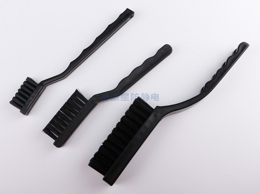 防靜電毛刷也稱防靜電刷,其手柄部分由高強度PP塑料加導電粉制成,刷毛部分由PA尼龍加導電粉制成,具有耐磨、耐高溫、不粘塵、韌性好、無異味等極佳性能,主要用于清潔各種元器件,掃除PCB線路板等器件的表面污物,適合于清潔、清洗、包裝區等使用。防靜電毛刷按外形大致可分為:防靜電牙刷(又稱曲柄型)、防靜電U型刷、防靜電直柄刷、防靜電排刷、防靜電圓柄刷。