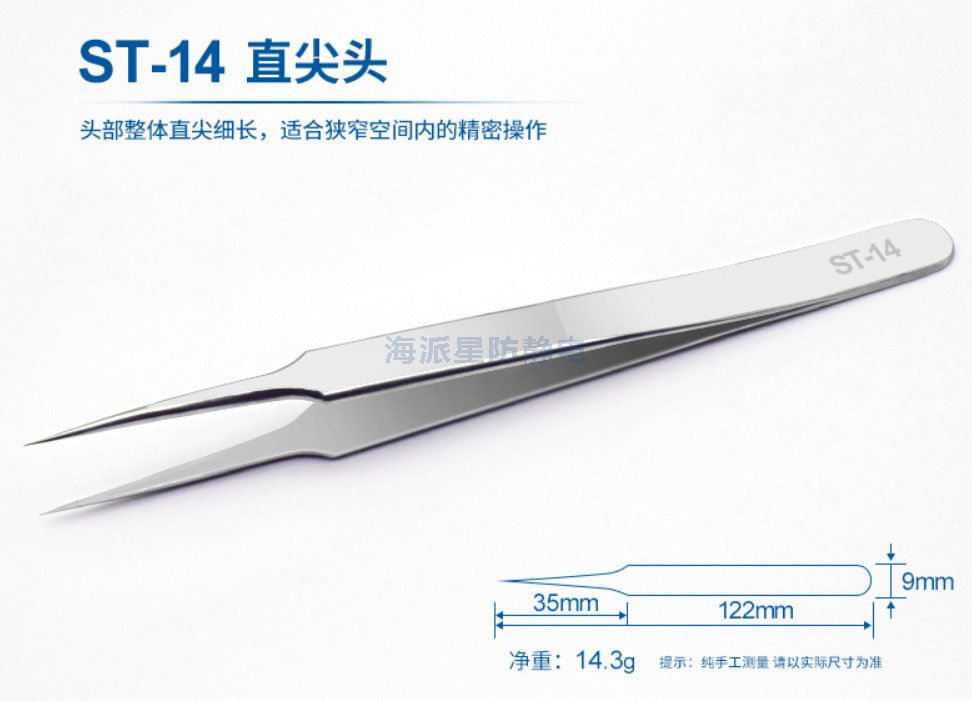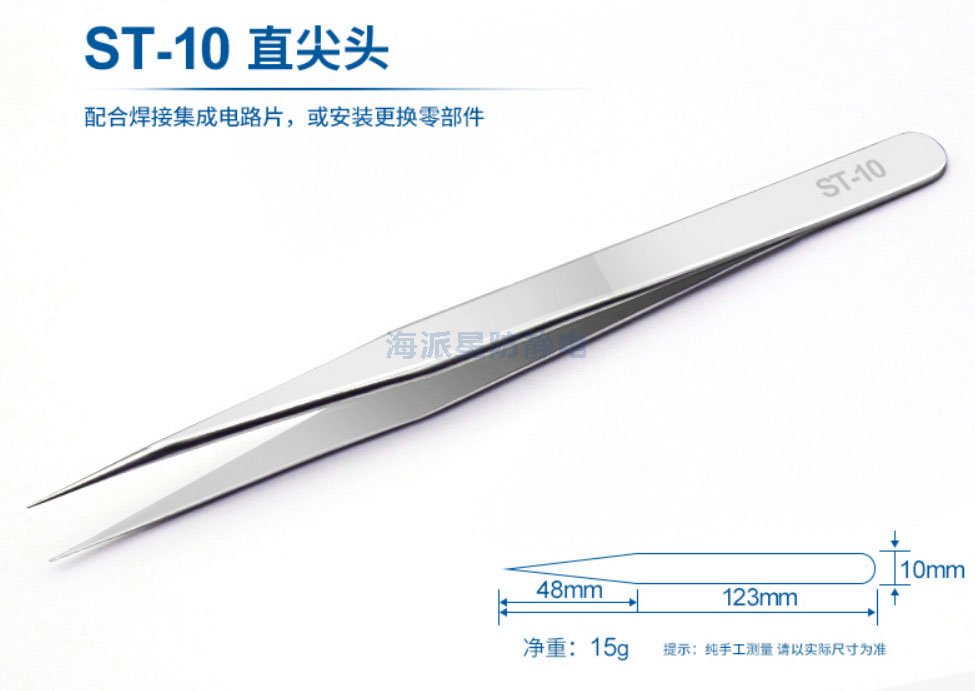 | ST-12 | 鑷子長度更長,前端寬度更寬,適合夾取電路板等比較用力場合 | ||||||