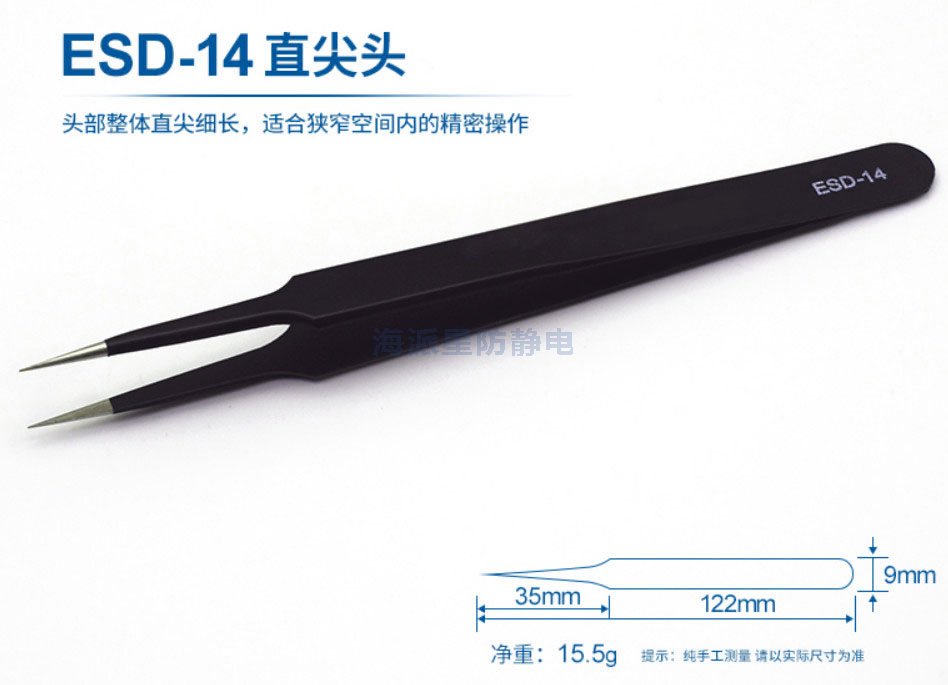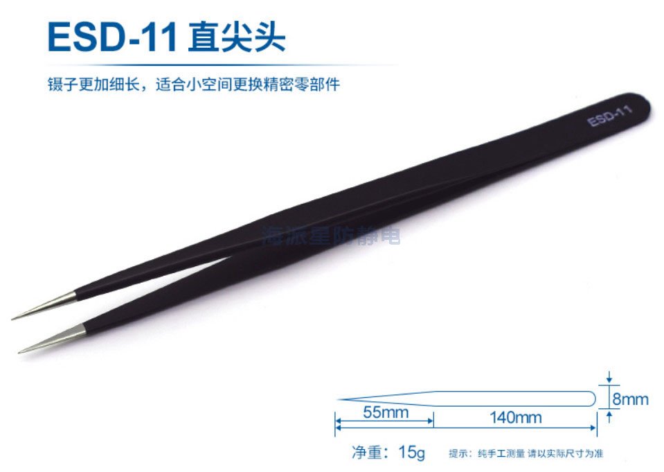 | ESD-11 | 鑷子更加細(xì)長(zhǎng),適用于小空間更換精密零部件 | ||||||