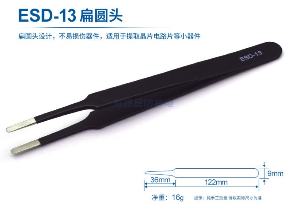 | ESD-13 | 扁圓頭設(shè)計(jì),不易損傷器件,適用于提取晶片、電路片等小器件 | ||||||